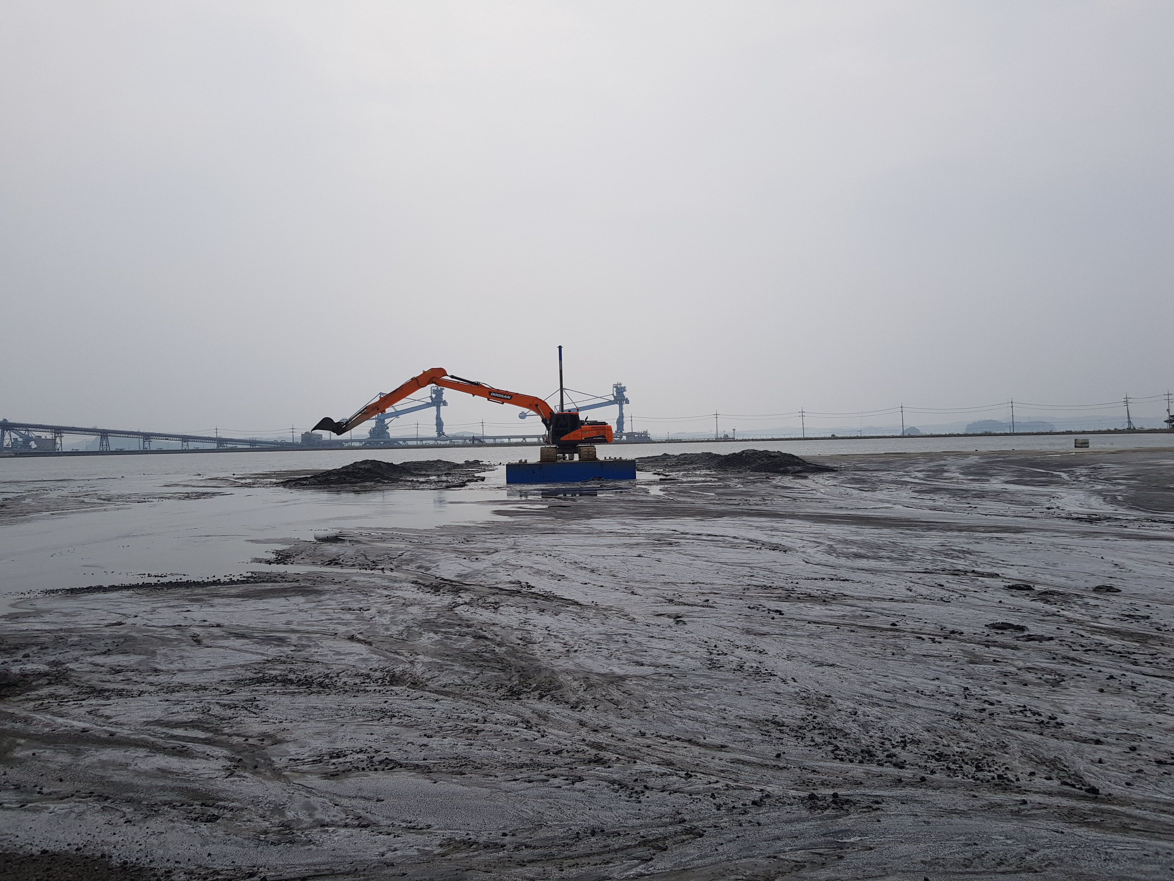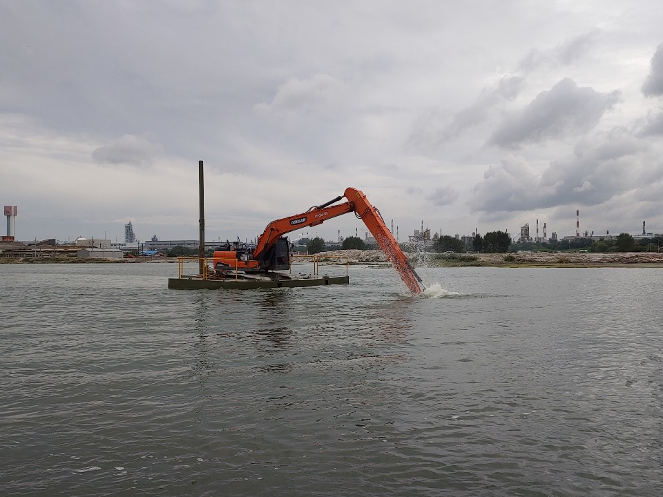 - 일반 굴착기의 진입이 불가능한 수상, 습지, 갯벌과 같은 연약지반 현장에 투입 가능