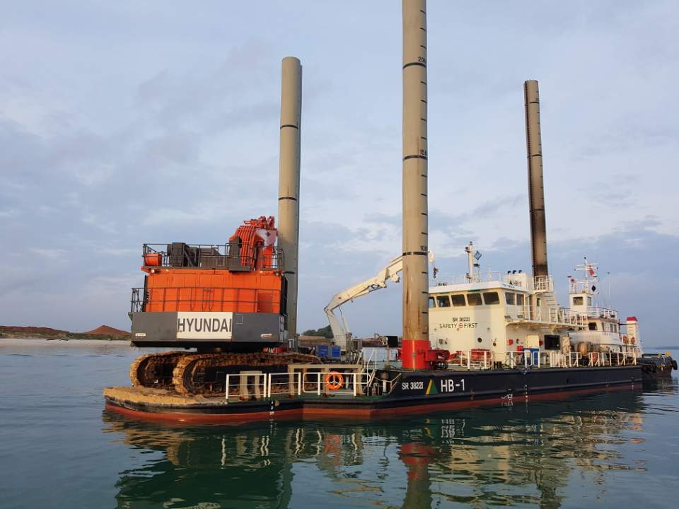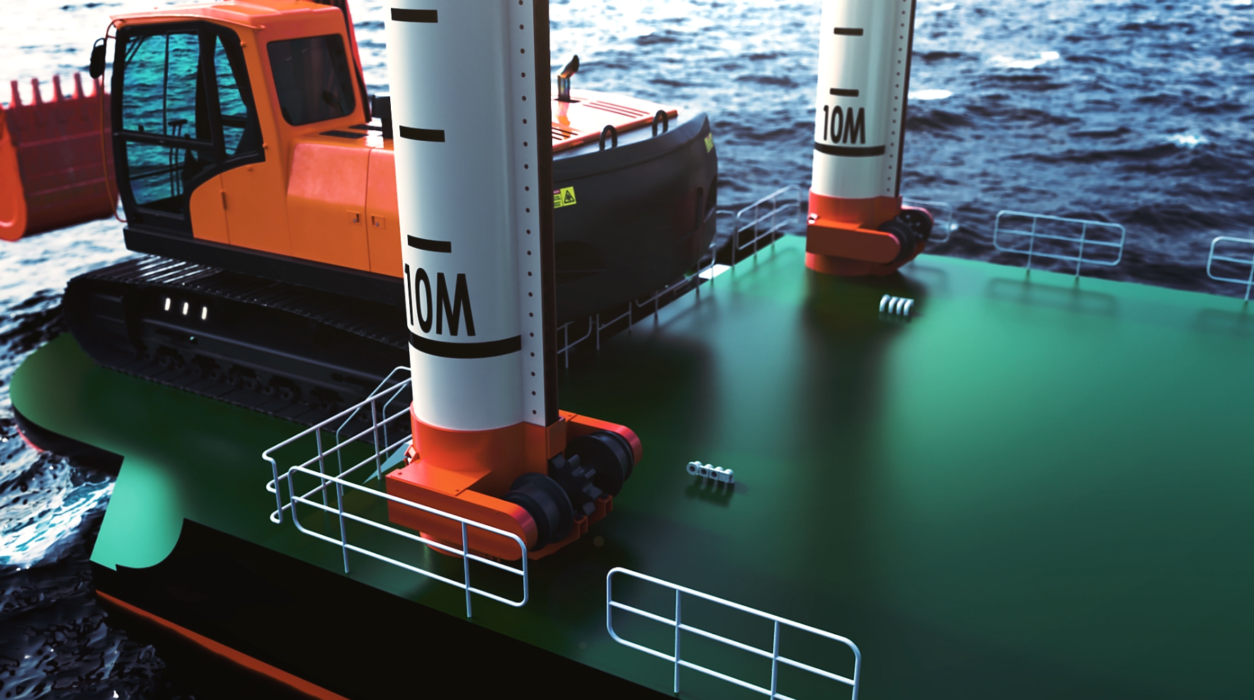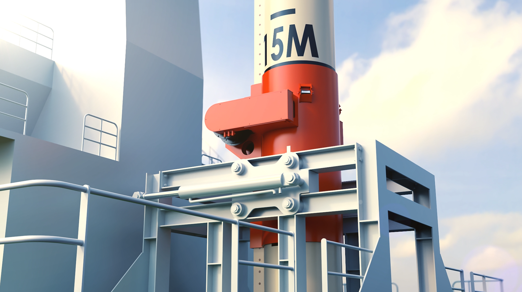 대형바지선에 탑재되는 스퍼드 시스템으로 선수방향 양측에 탑재된 2개의 스퍼드와 선미 에 탑재된 1개의 틸팅 스퍼드로 구성됩니다. Rack & Pinion type으로 Backhoe Dredger, Barge등 대형 선박의 수중 작업 시 선체를 고정시켜 안정적인 작업이 가능하게 합니다.