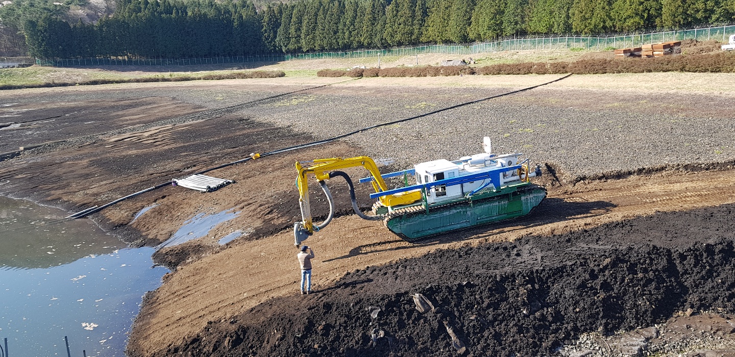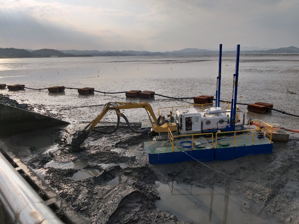 갯벌이나 습지와 같은 연약지반, 현장이 협소하여 소형 준설선을 필요로 할 때 활용하기 적합합니다.